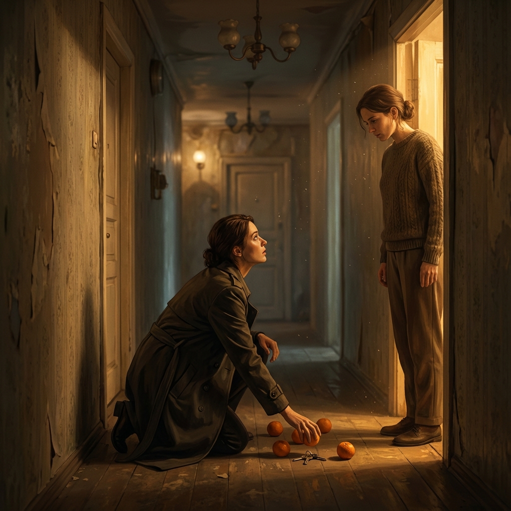 Fui pegar uma das laranjas que tinha rolado para perto da porta dela. Nossas mãos se esticaram ao mesmo tempo. A ponta dos meus dedos roçou na pele da mão dela. Foi um choque estático, mas também térmico. A pele dela estava febril, quente. Ela não recuou. Ficamos ali, agachadas no corredor, segurando a mesma laranja, olhando uma nos olhos da outra.